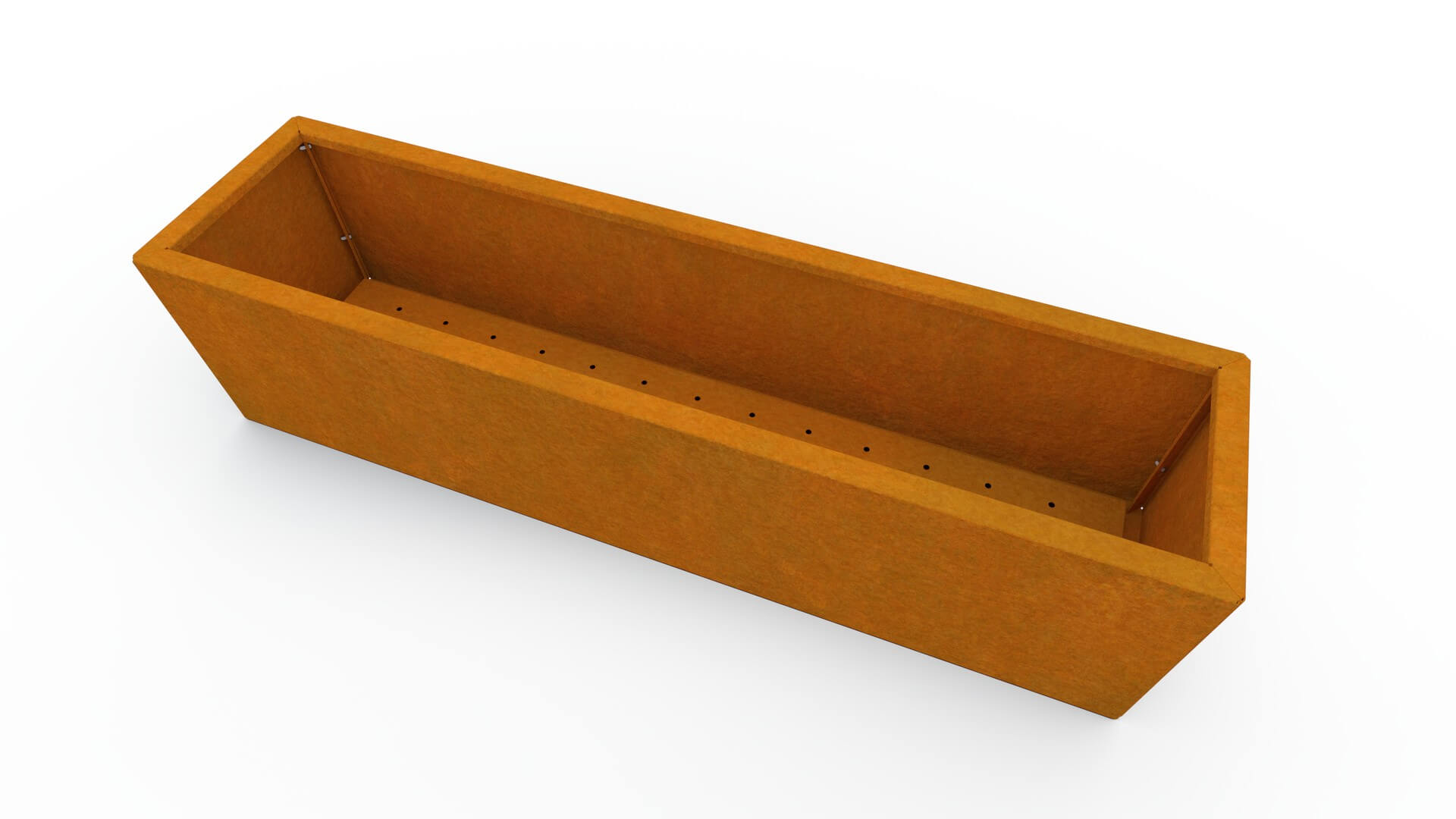 La fioriera è realizzata in acciaio corten di alta qualità con uno spessore di 1,5 mm, noto per la sua eccezionale resistenza e lunga durata. Con il tempo il corten sviluppa una naturale patina brunastra che conferisce al materiale un aspetto distintivo e moderno. La patina si forma gradualmente e permette alla fioriera di resistere a tutte le condizioni atmosferiche, senza bisogno di verniciatura o di ulteriore manutenzione.