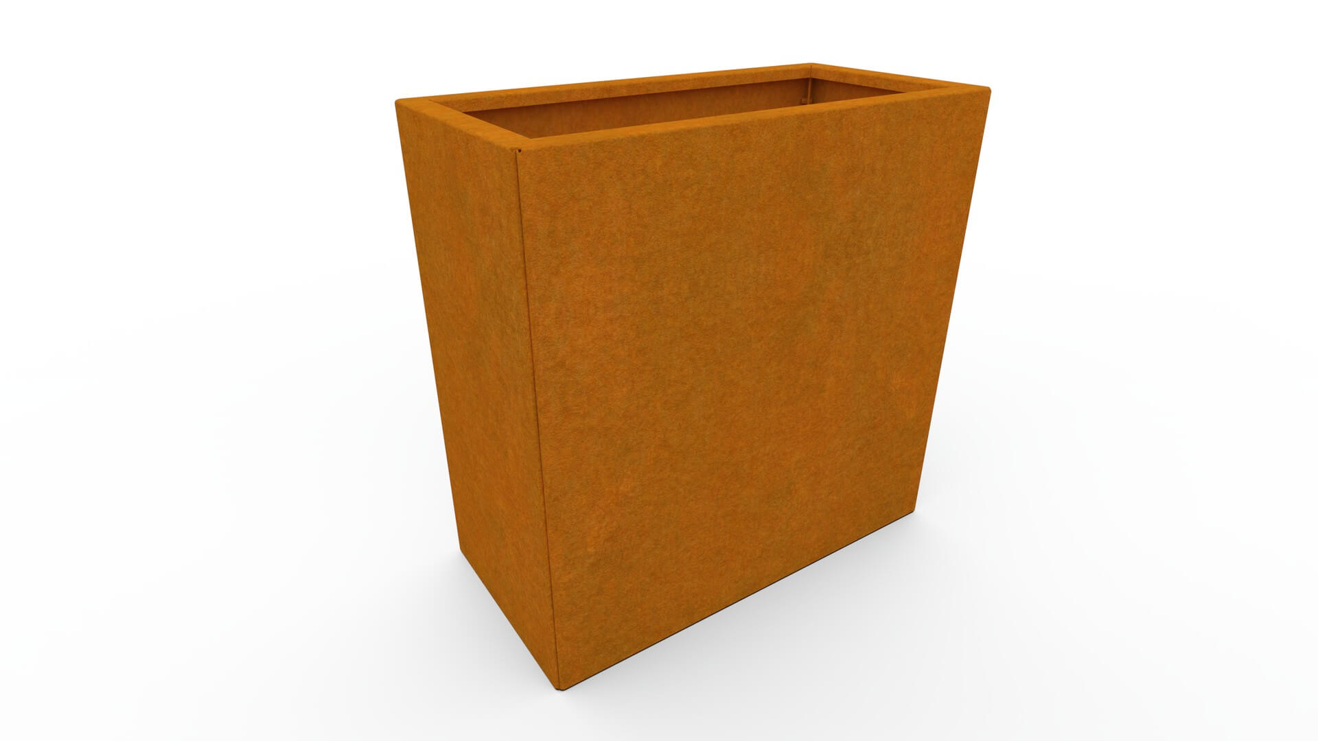 La fioriera è realizzata in acciaio corten di alta qualità con uno spessore di 1,5 mm, noto per la sua eccezionale resistenza e lunga durata. Con il tempo il corten sviluppa una naturale patina brunastra che conferisce al materiale un aspetto distintivo e moderno. La patina si forma gradualmente e permette alla fioriera di resistere a tutte le condizioni atmosferiche, senza bisogno di verniciatura o di ulteriore manutenzione.