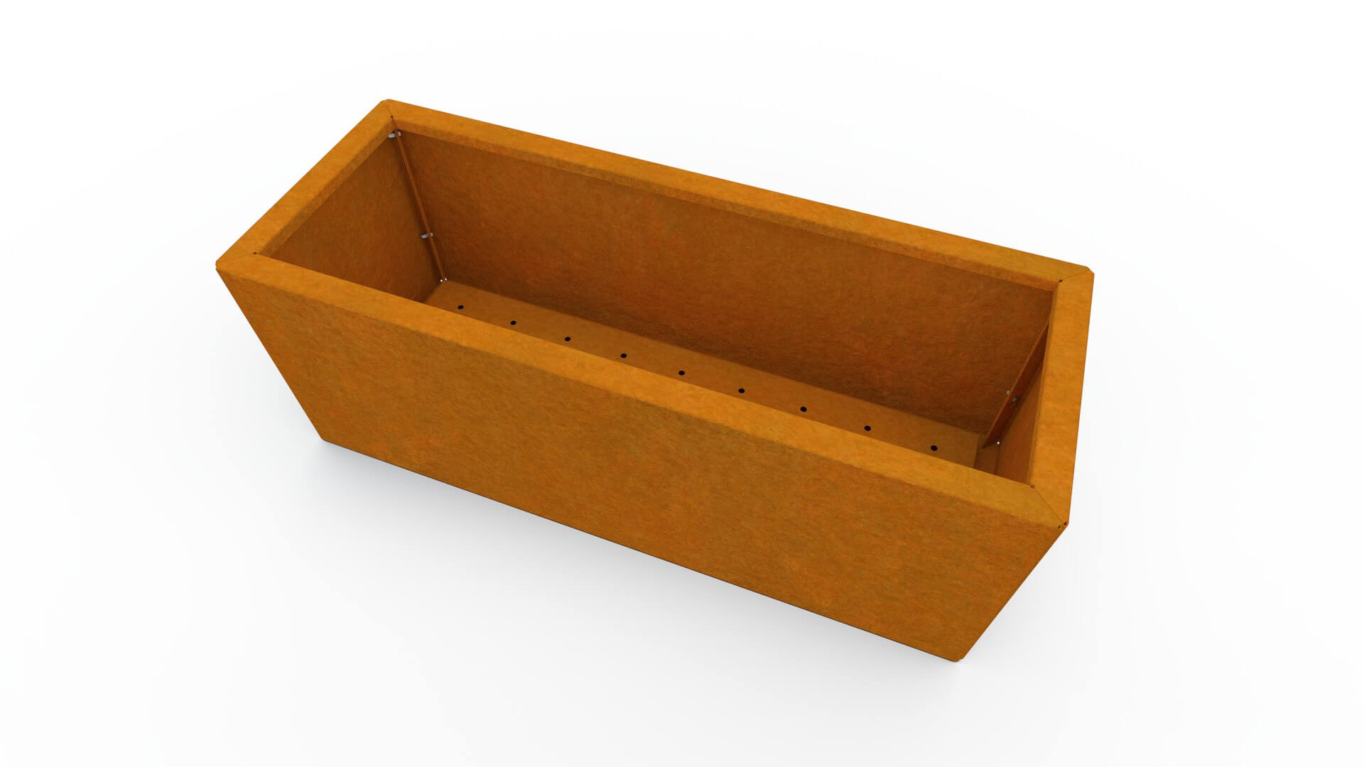 La fioriera è realizzata in acciaio corten di alta qualità con uno spessore di 1,5 mm, noto per la sua eccezionale resistenza e lunga durata. Con il tempo il corten sviluppa una naturale patina brunastra che conferisce al materiale un aspetto distintivo e moderno. La patina si forma gradualmente e permette alla fioriera di resistere a tutte le condizioni atmosferiche, senza bisogno di verniciatura o di ulteriore manutenzione.