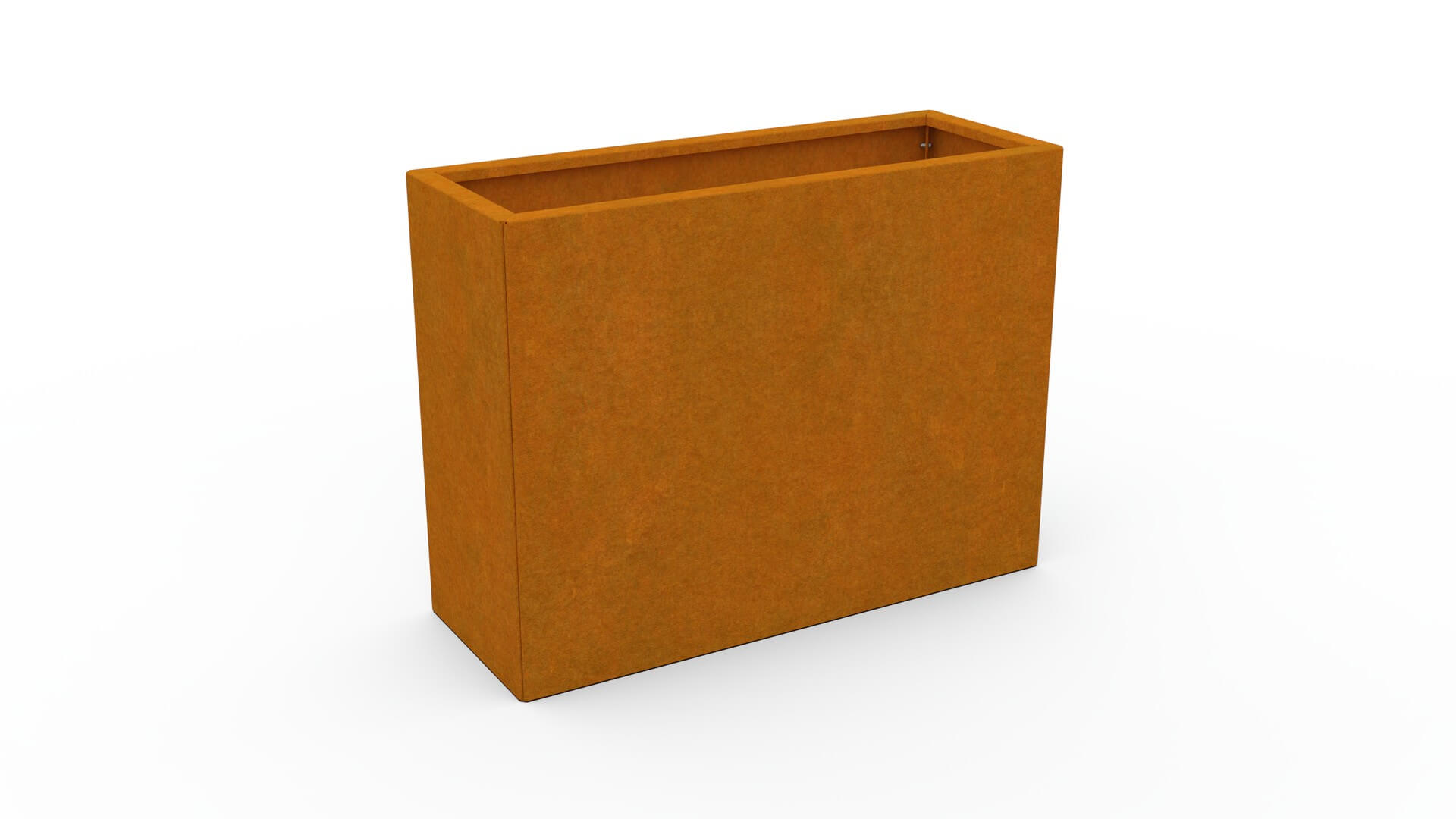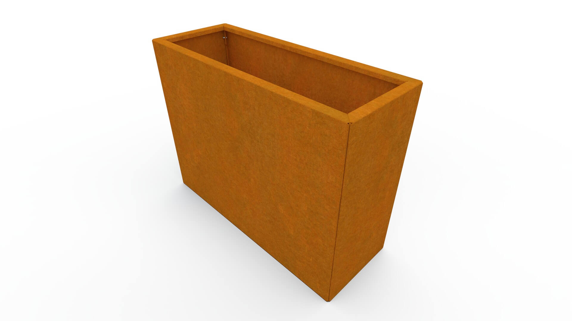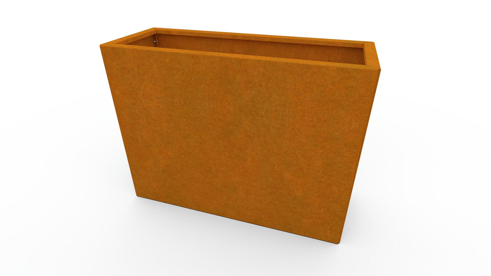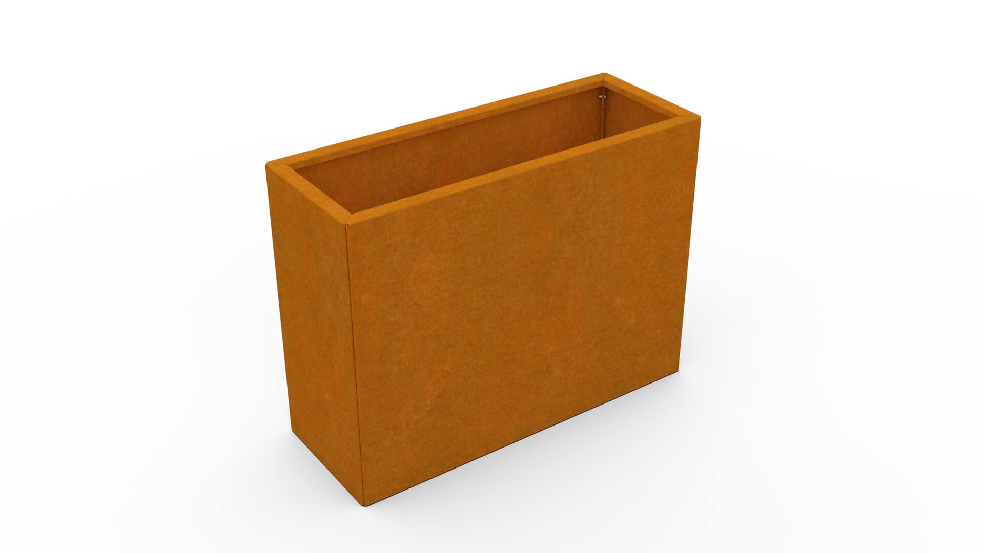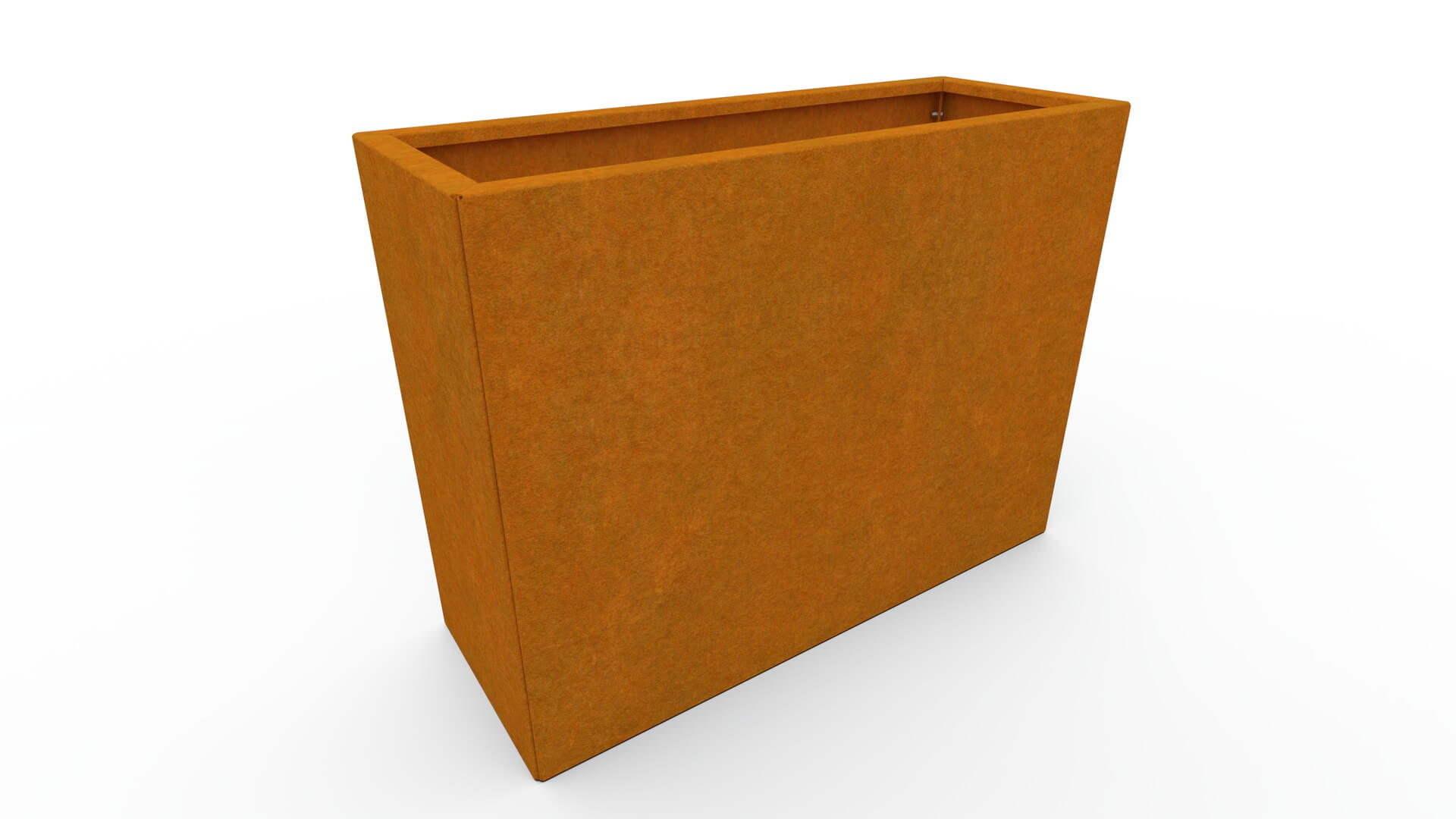 La fioriera è realizzata in acciaio corten di alta qualità con uno spessore di 1,5 mm, noto per la sua eccezionale resistenza e lunga durata. Con il tempo il corten sviluppa una naturale patina brunastra che conferisce al materiale un aspetto distintivo e moderno. La patina si forma gradualmente e permette alla fioriera di resistere a tutte le condizioni atmosferiche, senza bisogno di verniciatura o di ulteriore manutenzione.