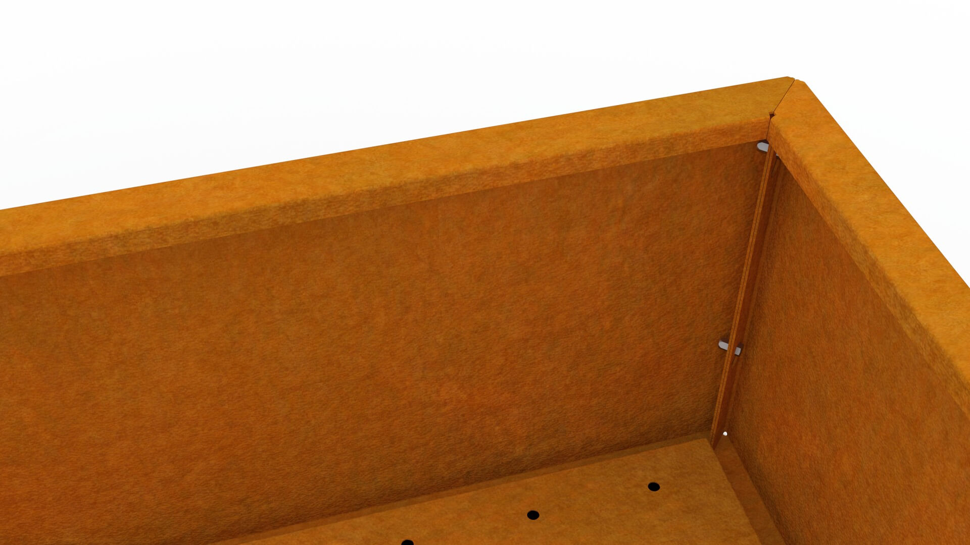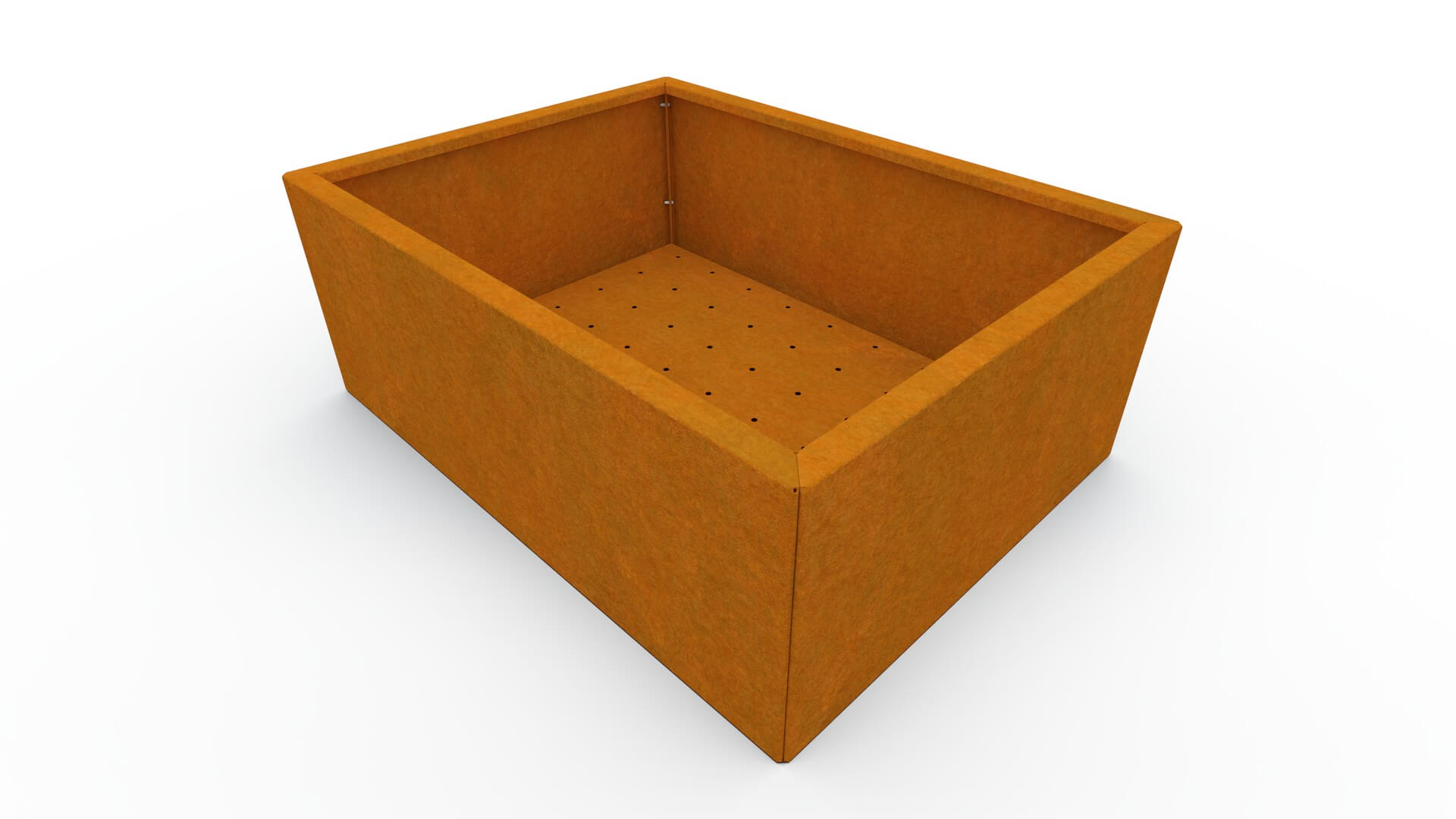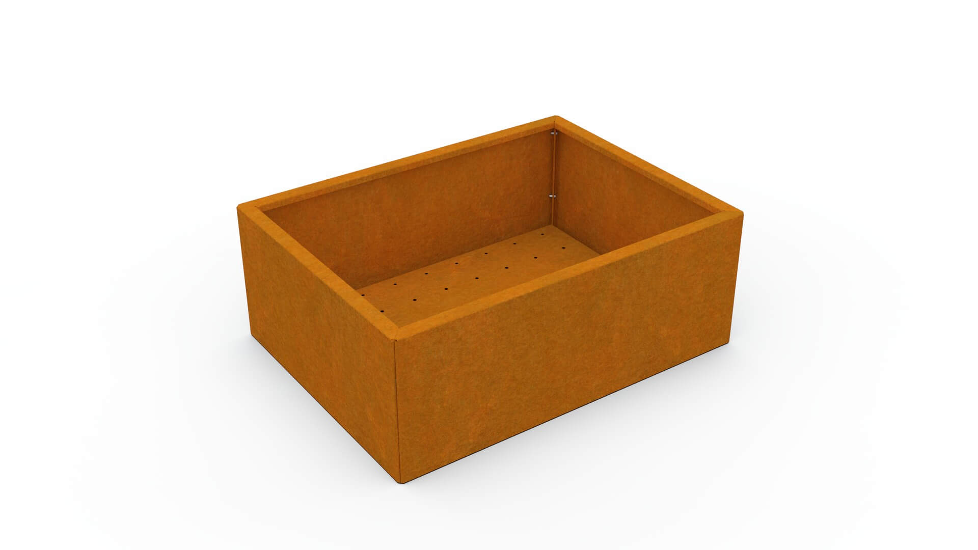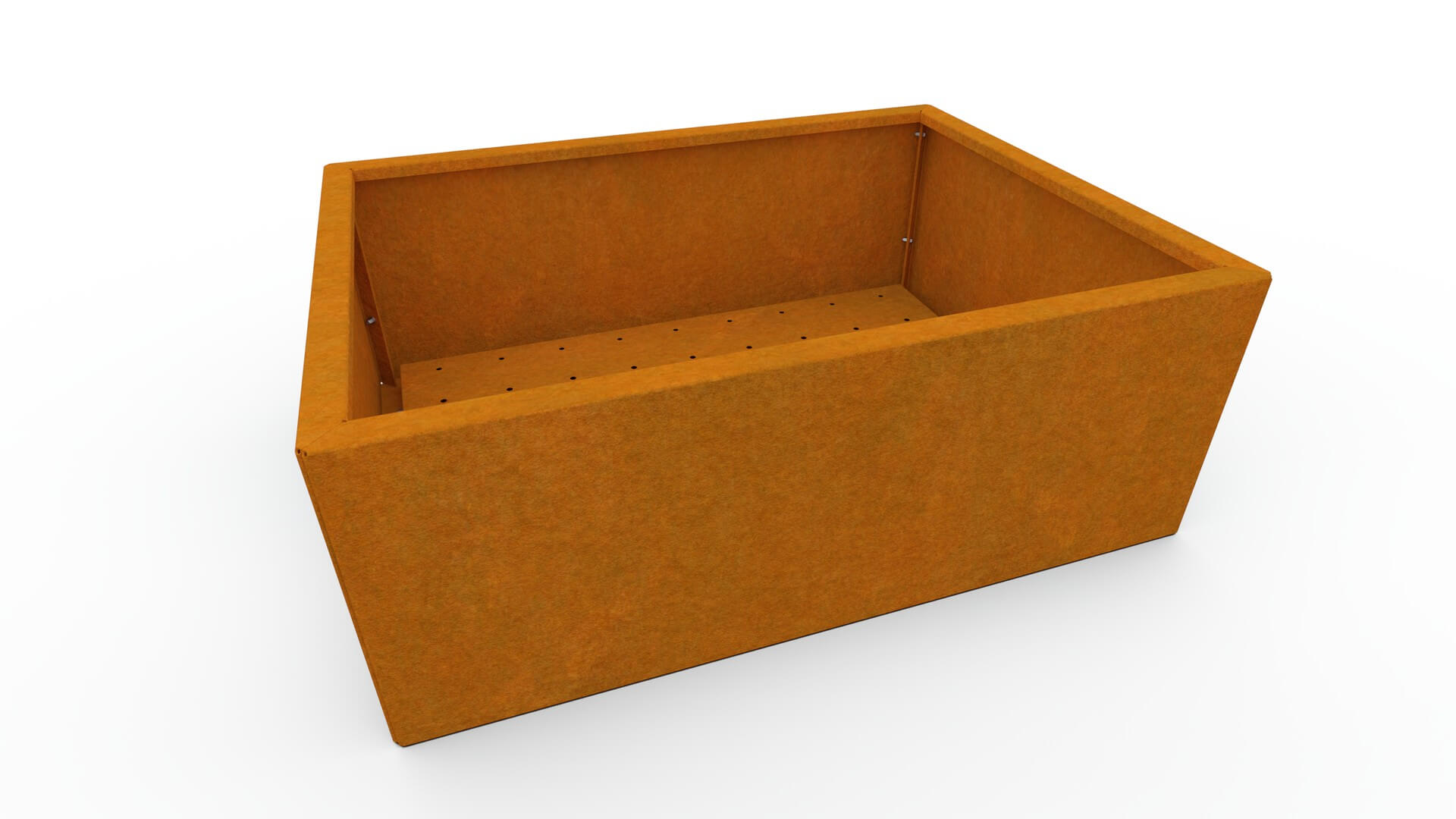 La fioriera è realizzata in acciaio corten di alta qualità con uno spessore di 1,5 mm, noto per la sua eccezionale resistenza e lunga durata. Con il tempo il corten sviluppa una naturale patina brunastra che conferisce al materiale un aspetto distintivo e moderno. La patina si forma gradualmente e permette alla fioriera di resistere a tutte le condizioni atmosferiche, senza bisogno di verniciatura o di ulteriore manutenzione.