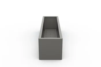 La fioriera è realizzata in lamiera zincata di alta qualità spessa 1,5 mm, che garantisce un’eccellente resistenza alla corrosione e una lunga durata. La superficie è verniciata con vernice resistente ai raggi UV e all’acqua nella tonalità RAL 9007 FS (grigio antracite), che assicura un aspetto moderno ed elegante e ulteriore protezione dagli agenti atmosferici.