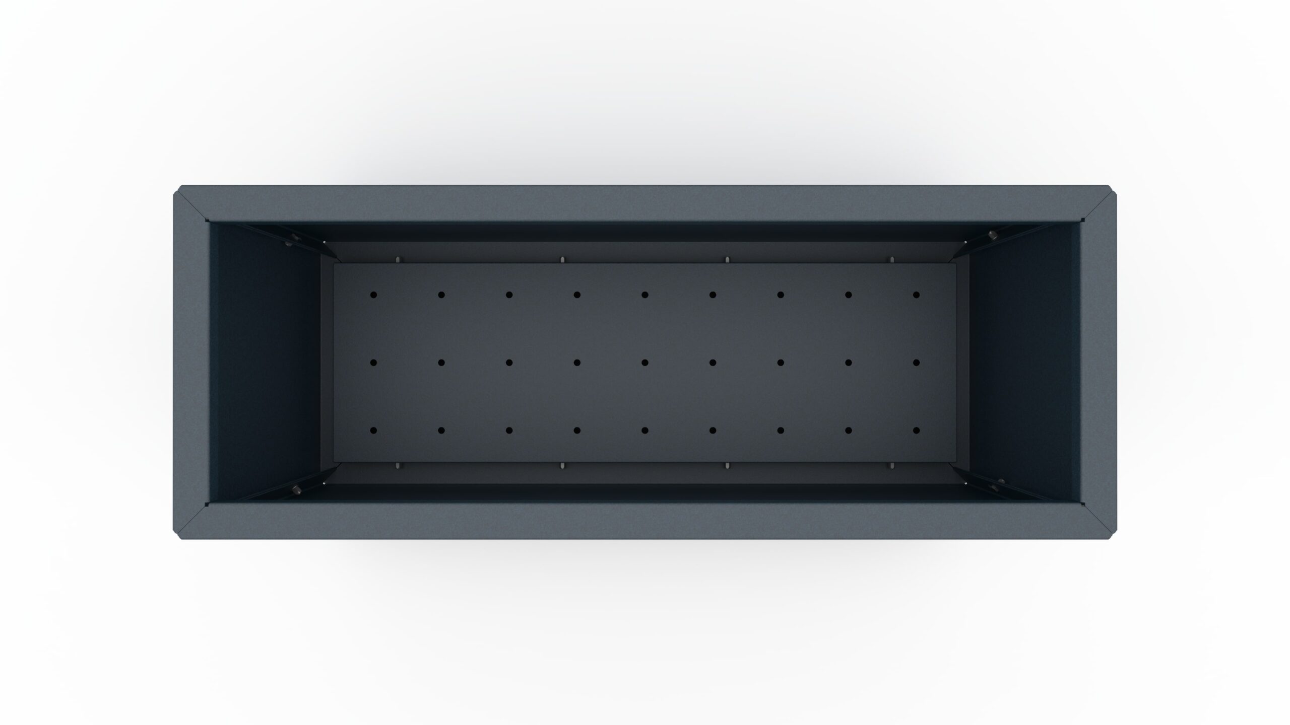 La fioriera è realizzata in lamiera zincata di alta qualità spessa 1,5 mm, che garantisce un’eccellente resistenza alla corrosione e una lunga durata. La superficie è verniciata con una vernice resistente ai raggi UV e all’acqua nella tonalità RAL 7016 FS (grigio antracite), che assicura un aspetto moderno ed elegante e una protezione aggiuntiva dagli agenti atmosferici.