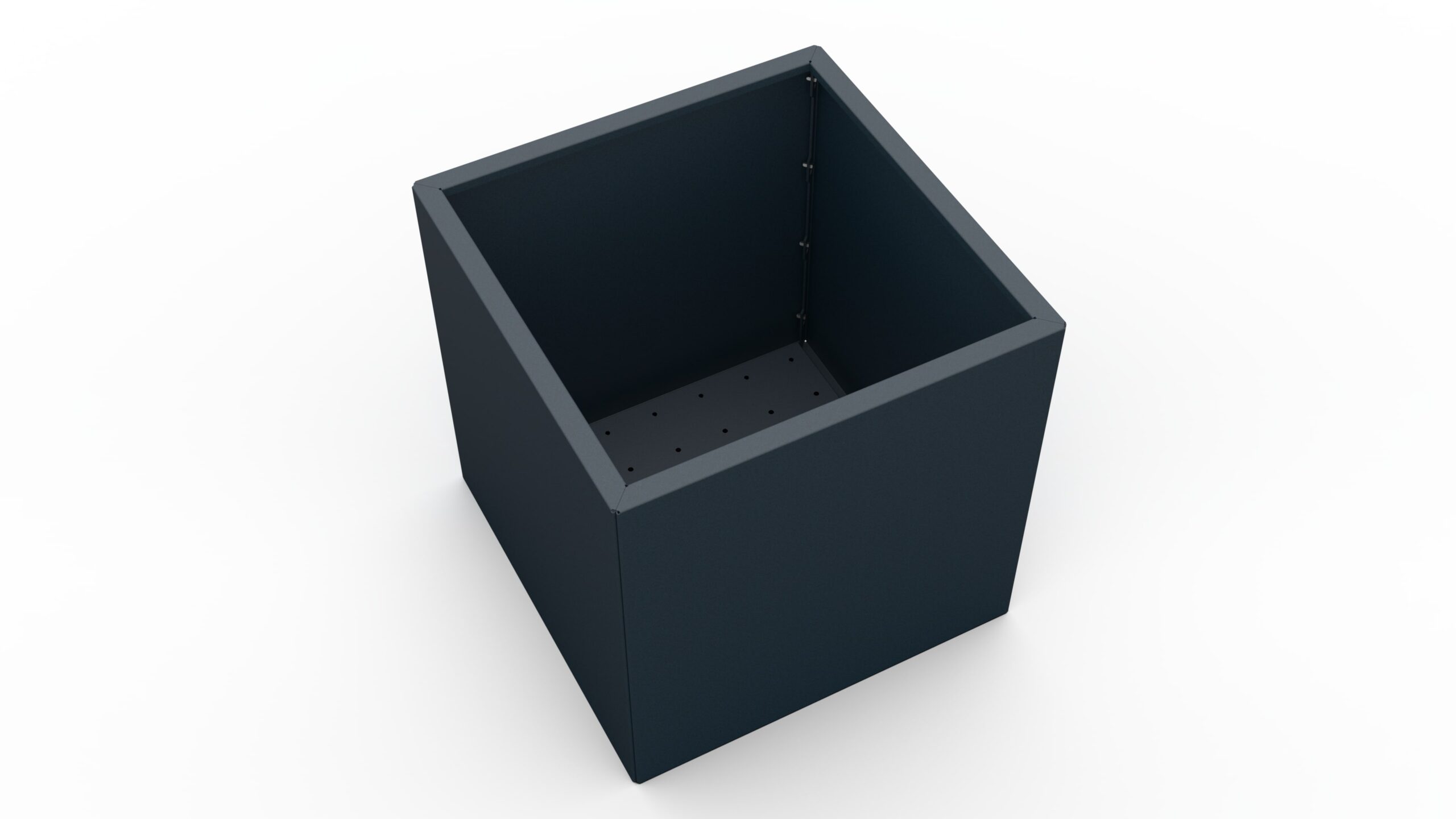 La fioriera è realizzata in lamiera zincata di alta qualità spessa 1,5 mm, che garantisce un’eccellente resistenza alla corrosione e una lunga durata. La superficie è verniciata con una vernice resistente ai raggi UV e all’acqua nella tonalità RAL 7016 FS (grigio antracite), che assicura un aspetto moderno ed elegante e una protezione aggiuntiva dagli agenti atmosferici.